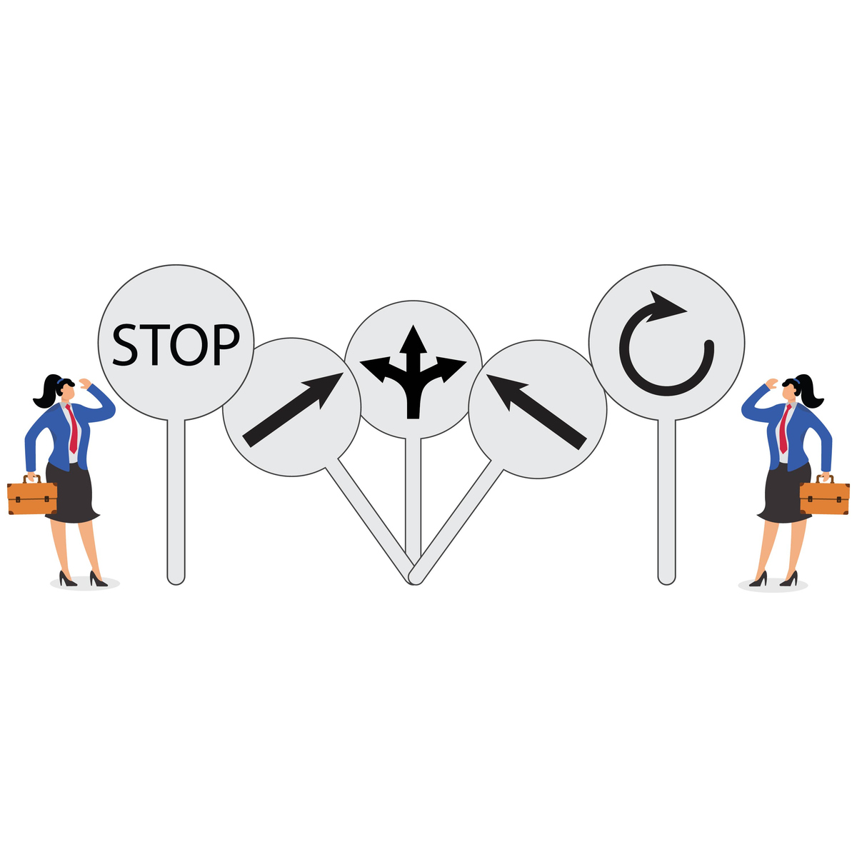 商业战略概念,决策标志上的白色背景,商人选择方式图标轮廓风格的移动