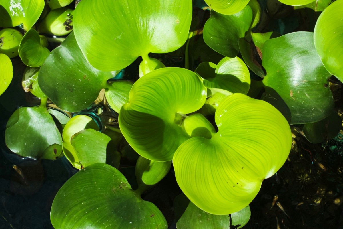 水葫芦漂浮在水面上,翠绿的叶片如同小小的伞盖,为水下的世界撑起一片